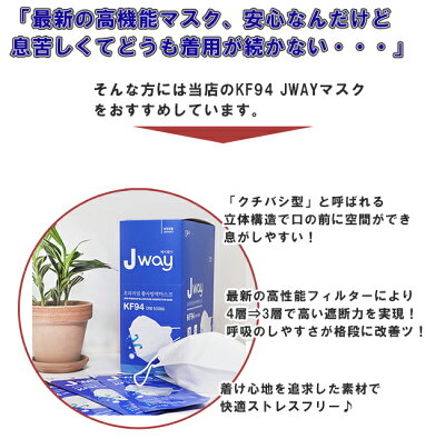 SPEC原材料名:不織布 生産国:韓国 安全基準:食品医薬品安全処の医薬部外品製造業申告及び品目許可と試験・検査完了(韓国) KF94 JWAYマスク セット一覧 マスク 50枚1箱 マスク 100枚2箱 マスク 200枚4箱 マスク 500枚10箱