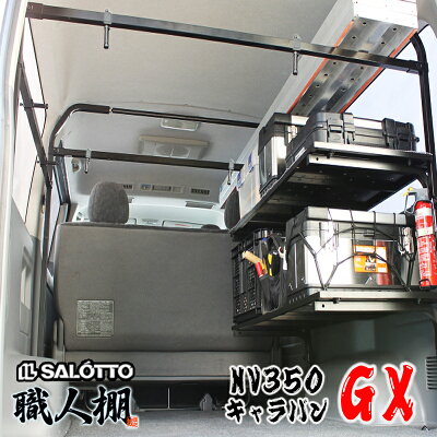 『 荷室革命 』 NV350 キャラバン 棚を運転席側に2段+縦バー プレミアムGX の荷室を劇的に変える! 職人棚 ルーフキャリア の様に 長尺 車内収納 E26系 日産 ロング 新型 ライダー カスタム オプション パーツ カバー 内装 車中泊 ベッドキット