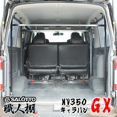 『 荷室革命 』 NV350 キャラバン 車内にキャリアセットプレミアムGX の荷室を劇的に変える! 職人棚 ルーフキャリア の様に 長尺 車内収納 E26系 日産 ロング 新車 中古車 ライダー カスタム オプション パーツ カバー 内装 車中泊 ベッドキット
