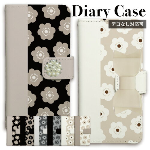 【マラソン限定★30%OFF】 iPhone13 iPhoneSE iPhone8 iphone12 iPhone13pro 13 12pro 12 mini iPhone11 iPhoneXR iPhone7 max 7 8 plus ケース 手帳型 11pro x 第2世代 iPhoneケース ブラック ホワイト マリメッコ風 花 カスタム オリジナル リボン デコ