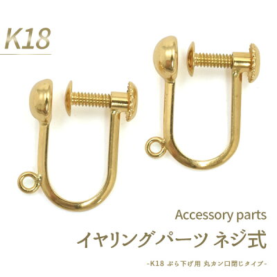 【送料無料】【K18 イヤリング ぶら下げ用 ネジ式 丸カン口閉じタイプ-】(手作りピアス 手作りアクセ オリジナル シンプル 金具 かわいい 金パーツ おしゃれ K18 18k 18金 細身 小ぶり 手芸材料 DIY diy 手作り ハンドメイド 連結金具 金具 )