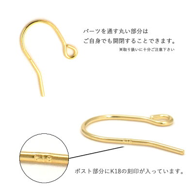 K18 アクセサリーパーツ-フックピアスパーツ 10mm- 丸い部分にパーツをつけることが出来るフック式のピアスパーツです。