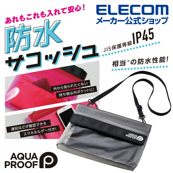 エレコム 防水 防塵 バッグ サコッシュ ショルダーベルト 付き アウトドア 水辺 プール レジャー AQUA PROOF スマホ JIS保護等級 IP45相当 ブラック P-WPBSBK